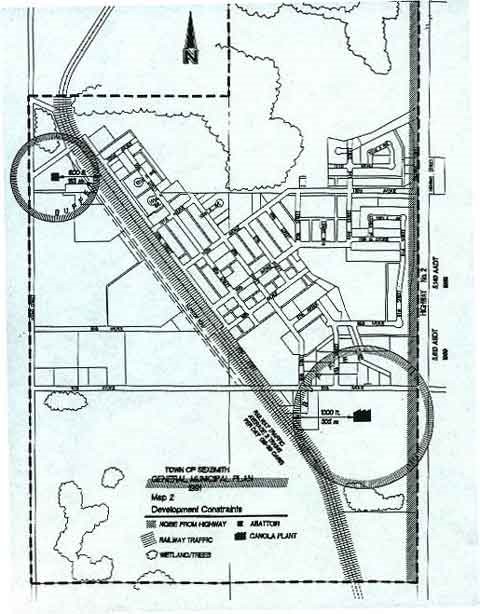 Industrial development is presently dominated by the resin plant located to the south of 95th Avenue. Additional industrial expansion related to the resin plant could be accommodated south of the existing operation. The West Sexsmith Area Structure Plan has also allotted approximately 24 ha (59.3 ac) of land adjacent to the railway on the NE 25-73-06-W6M for possible industrial/residential expansion.