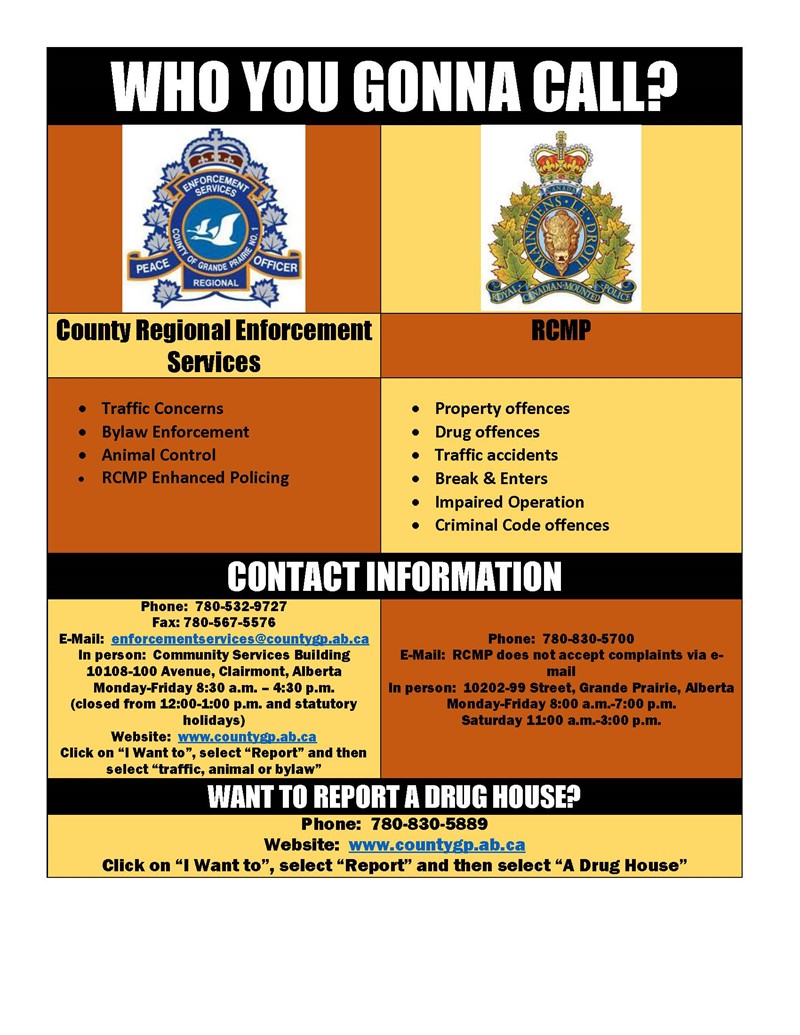 Want to know who to contact to report a crime? Bylaw Offence? Animal Control?